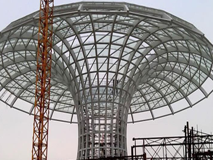 二、球形网架结构因其结构新颖,受力合理,自重轻、用钢量低等优点。如大型体育场馆球形来宾螺栓球网架、公共场馆球形网架、电厂来宾螺栓球网架、水泥工业球形网架、仓储物流球形网架、来宾干煤棚工业球形网架、来宾收费站来宾加油站球形网架、展览中心、影剧院、商场、航站楼、候车厅、工厂来宾车间、仓库、电视塔等球形螺栓球节点网架。国内球形网架结构主要分为:来宾焊接球节点网架及螺栓球节点网架两种。螺栓球节点网架其构件工厂内加工量较大,现场安装便捷,适用于现场工期紧,来宾施工条件、用电量受制约,网架形状复杂、来宾杆件定位困难的异形结构。螺栓球节点球形网架系统基本由来宾杆件、螺栓球、支撑支座等组成。按照节点形式可分为交叉来宾桁架体系、四角锥体系、三角锥体系等。支撑方式多为固定支座支撑。对于大面积、大跨度及有特殊受力或伸缩要求的网架结构可采用橡胶支座、滑移支座、球铰支座等支撑形式,以满足结构自身的受力稳定、均衡,便于内力释放等设计要求。